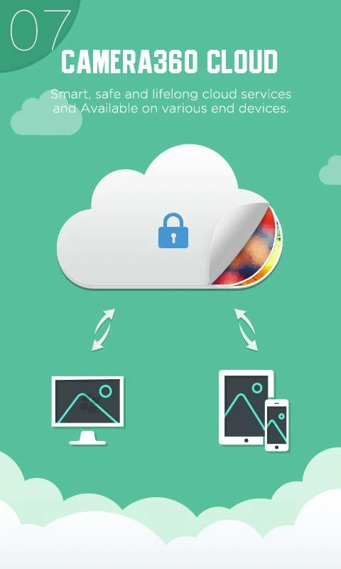 Để làm cho cuộc sống của bạn dễ dàng hơn, Camera360 đã giới thiệu Camera360 Cloud, một nền tảng điện toán đám mây có thể giúp bạn quản lý, chỉnh sửa, lưu trữ và chia sẻ hình ảnh của bạn tất cả ở một nơi. Tham gia vào hàng triệu usersin thưởng thức các dịch vụ miễn phí!